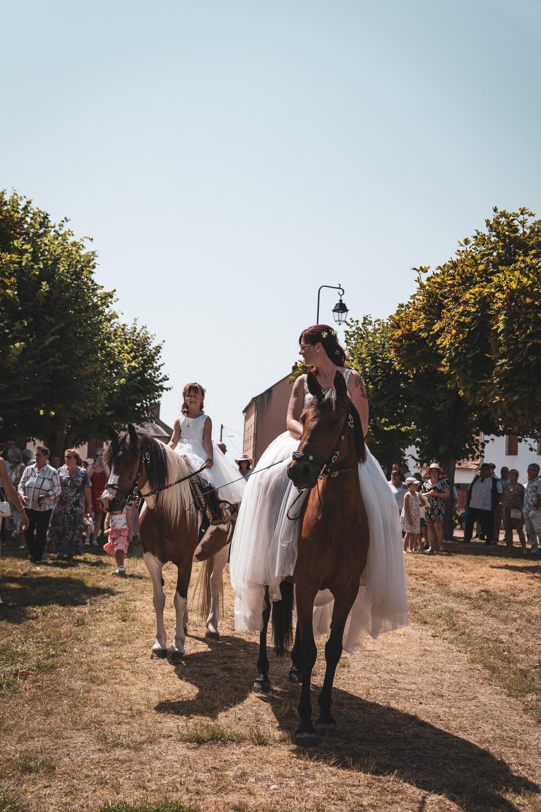 Pour une arrivée mère-fille ou des deux mariés à cheval